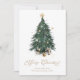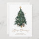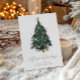 Bring grace and glamour to your holiday greetings with this stunning white Christmas card. A beautifully painted evergreen tree and festive gifts take center stage, complemented by elegant gold calligraphy. The clean design radiates warmth, elegance, and the true spirit of Christmas.