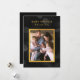 Este cartão de Natal fotográfico apresenta sua foto e as palavras "Feliz Ano Novo" em folha de ouro falso contra um fundo de padrão de luzes bokeh escuras. O cartão tem um fundo cinza escuro no verso.