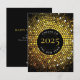 Este cartão de Ano Novo apresenta um padrão circular de luzes douradas brilhantes contra um fundo preto rico, criando uma moldura circular para a indicação do ano. Adicione sua própria mensagem no verso contra o fundo preto. É versátil o suficiente para ser um cartão de felicitações de escritório, cartão de aniversário ou cartão de Ano Novo para casamento. Disponível com produtos correspondentes.