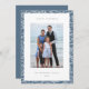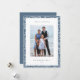 Compartilhe cartões de natal com esses cartões com fotos modernos e na moda Hanukkah apresentando seu conjunto de fotos favorito em um fundo de flocos de neve e galhos de inverno em branco em azul de folha média. Uma área de mensagem editável permite personalizar seu Chanukah ou cartões de natal. Adicione seu nome ou nomes de família abaixo, juntamente com o ano.