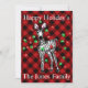 Desenho festivo de zebra para as festas - luzes cintilantes vermelhas e verdes - xadrez escocês tartan vermelho e preto - personalizável.