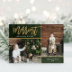 Cartões de Natal personalizados e acessíveis com fotos e modelos simples para personalização. Este design elegante apresenta uma borda com efeito de folha de ouro em volta de um layout de colagem de 2 fotos. O texto com caligrafia moderna diz Merriest Christmas Wishes (Votos de um Feliz Natal). Personalize com suas fotos, nome da família, o ano ou outro texto personalizado. Por favor, note que o efeito de folha de ouro faz parte do design impresso - os cartões não terão folha metálica real. Adicione fotos adicionais e sua saudação personalizada dentro do cartão. Use as ferramentas de design para mudar as fontes e cores do texto, adicionar mais fotos e criar um design único de cartão de Natal com fotos.