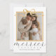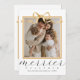 Com uma escrita elegante e tipografia clássica, este cartão de Natal de foto é perfeito para uma família. Um design lindo e elegante apresenta uma foto totalmente personalizável em uma moldura neutra em dourado falso coroada por uma fita de laço, que parece um presente de Natal perfeito. O verso apresenta saudações de Natal e uma mensagem personalizada. Um design elegante e único, perfeito para uma família que acredita em ser "mais alegre junto"! Pressione o botão "personalização" para substituir a imagem e inserir suas informações.
