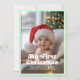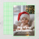 Celebre o primeiro Natal do seu bebê com este doce cartão de Natal. Com uma sobreposição de xadrez branco sobre um fundo pastel suave, este design personalizável é perfeito para compartilhar a alegria da primeira temporada de festas do seu pequeno. Adicione a foto, o nome e a mensagem de Natal do seu filho para criar uma lembrança que a família e os amigos vão guardar por anos.