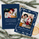 Envie saudações festivas com este cartão de Natal moderno, com arcos brancos desenhados à mão e detalhes de fita em fundo de marinho profundo. A frente mostra sua foto vertical embaixo do "Feliz Natal" em um roteiro elegante com seu nome de família e ano, enquanto a parte de trás destaca uma segunda foto com espaço para sua mensagem personalizada. Um sofisticado design de 2 fotos em marinho e branco — perfeito para as famílias que querem uma nova tomada na moda no clássico cartão de Natal.
