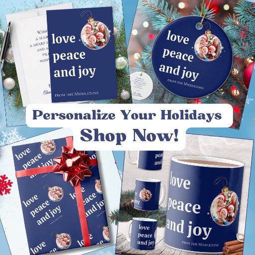 Cartão De Festividades Marinho Blue Christmas Family Photo Love Peace Joy