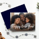 Esta placa de feliz ano novo moderna e vibrante apresenta a sua foto pessoal na frente, com uma camada branca moderna e uma cor azul marinho escura na parte de trás.