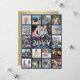 Que ano para se lembrar! Envie saudações na moda alegres e compartilhe 17 de suas fotos favoritas com um cartão de feriado de colagem de fotos de 6,5" x 8,75" extras. (DICA DE IMAGEM: Uma maneira fácil de centralizar uma foto exatamente como você deseja é recortá-la antes de carregá-la no site do Zazzle.) O texto nesta modelo é simples de personalizar para incluir qualquer texto como Feliz Natal, Feliz Natal, Saudações de Seasons, Anos novos Cheers, etc. O marinho azul, branco e ouro apresenta uma folha de ouro falsa, caligrafia de scripts manuscritos de tendências, nome e ano da família de tipografia modernos e uma grade de fotos única com 17 imagens de sua escolha. No verso está o espaço para escrever uma mensagem personalizada ou o ano em revisão. A família e os amigos adorarão mostrar esta elegante carta personalizada. Observe que o ouro é impresso a cor, não a folha metálica.