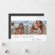 Mande cartões de natal para amigos e família em estilo chic com nossos cartões com fotos elegantes. Projetado para acomodar duas de suas fotos favoritas dispostas lado a lado, esta placa minimalista gráfica apresenta seu nome de família em letras de cinza de carvão, com "Feliz feriado" em roteiro clássico de ornamentado ao lado do ano. Uma silhueta pálida de flocos de neve na esquina completa esta design moderna e mínima.