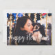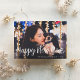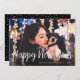 Perdeu o prazo para os cartões de Natal? Compartilhe os desejos de Ano Novo com este cartão com fotos simples e elegante. O design apresenta a sua foto favorita de cheio sangrando horizontal/paisagística com "Feliz ano novo" no estilo manuscrito de uma tipografia casual de scripts brancos. Personalize com a sua saudação personalizada e o ano na base. Cartões invertendo para um padrão festivo de confete preto e branco.