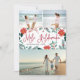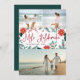 Mande cartões de natal para amigos e família, estilo ilha, com nossos cartões com fotos de férias tropicais. Design apresenta três fotos favoritas com a saudação de Natal havaiana "Mele Kalikimaka" no centro em tipografia com letras vermelhas, flanqueada por vibrantes flores vermelhas da poinsettia e folhas holly. Personalize com seus nomes e o ano abaixo.