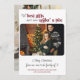 Anúncio de gravidez no cartão de Natal com inscrições modernas, fotos personalizadas e design tipográfico de ornamentado. "Os melhores presentes não vêm debaixo de uma árvore... Feliz Natal da nossa futura família de 3" está escrito em cartazes modernos contemporâneos e o modelo fotográfico está preparado para você adicionar 2 fotos. Você também pode adicionar sua data de vencimento do bebê. Suas fotos são exibidas no formato de retrato quadrado e vertical e as cores do texto e do fundo podem ser editadas usando a ferramenta design.