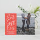 Este doce, mas moderno, cartão de anúncio de gravidez festiva apresenta um roteiro de caligrafia branca sobre um fundo vermelho festivo. O roteiro de caligrafia na frente diz "Melhor Presente Nunca". Este design acomoda um solteiro, uma foto quadrada na frente da placa. No verso encontrará um padrão de riscas horizontais, brancas e vermelhas festivas, que pode ser removido ou personalizado. Você também pode adicionar outra foto ou texto no verso selecionando "personalizar design mais".