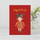Celebre o Ano Novo Lunar com este adorável Cartão de Férias Plano featuring uma menina chinesa fofa com o penteado tradicional e a saudação festiva "Gong Xi Fa Cai." Compartilhe suas bênçãos de prosperidade, felicidade e alegria com seus entes queridos.