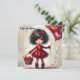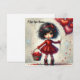 Cartão De Festividades Menina de aquarela segurando corações vermelhos ci