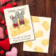 Ilustração totalmente queijosa e fofa de uma menina rato e um menino rato sentados em um bloco de queijo suíço Menina & Menino Rato Sentados no Queijo. Dizer personalizável "Você me faz derreter como suíço em um dia ensolarado!