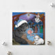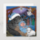 Lindo cachorro da Terra Nova desenhado e colorido à mão segurando o menino Jesus, completo com 3 reis magos, anjo e animais em uma manjedoura