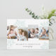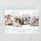 O único design de cartão de feriado moderno apresenta quatro fotos favoritas dispostas lado a lado com silhuetas de floco de neve verde de menta pastel de tamanho excessivo no fundo. Personalize com o seu cartões de natal personalizado e o(s) seu(s) nome(s) familiar(s) abaixo em caracteres clássicos; mostrados com "Saudações da Estação".