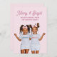 Merry & Bright this Christmas, with a charming twins holiday greeting featuring girls in matching merry and bright tees and wearing big smiles. The phrase Sets a festive tone, while the editable family name beneath adds a personal touch. Customize with your own family photo. A fun holiday card perfect for families with twins. Available as a printed card, digital download, or both, ideal for last minute sending.