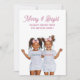 Merry & Bright this Christmas, with a charming twins holiday greeting featuring girls in matching merry and bright tees and wearing big smiles. The phrase Sets a festive tone, while the editable family name beneath adds a personal touch. Customize with your own family photo. A fun holiday card perfect for families with twins. Available as a printed card, digital download, or both, ideal for last minute sending.