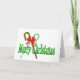O Cartão de Natal Merry Christmas Candy Canes apresenta a arte original com duas deliciosas canetas doces — uma listras vermelha e verde e as outras listras verdes e brancas coladas com um bonito arco de Natal vermelho. As palavras "Feliz Natal" encontram-se em bonito texto verde sobre as metades inferiores dos doces, com flocos de neve bonito verdes e brancos a nevar a espreitar, tudo num fundo azul-noturno impressionante. Dentro o cartão em texto vermelho desejando aos destinatários um Feliz Natal e um Fabuloso Ano Novo. Este bonito cartão de Natal agradará a todos na sua lista de Natal se foram malvados ou simpáticos. Compre cartões de saudação de Natal, t-shirts, canecas e outros presentes com belíssima arte de Natal original na nossa loja em zazzle.com/VicesAndVerses.