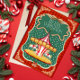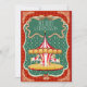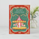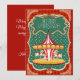 Vintage style inspired Merry-go-roung Merry Christmas card with customizable greetings on red background