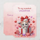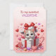 Um doce presente de Dia dos Namorados para dar ao seu filho de um gatinho em uma caixa de presente com fitas e corações vermelhos