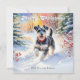 Mande bons desejos aos seus amigos e familiares com charme canino, com este cartão de Natal bonito. O cartão fotografa um lindo cão-schnauzer miniatura, correndo alegremente através da neve com um céu tardio e árvores cada vez verdes. A ilustração está em um estilo de aquarela atraente. No topo está a saudação "Feliz Natal" na tipografia moderna, enquanto o texto no fundo pode ser personalizado com o(s) seu(s) nome(s) ou outras palavras. Ideal para donos de xelins miniatura e amantes de cães.