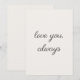 Featuring the phrase “love you, always” in a soft script font on a warm ivory background, this printable card is perfect for expressing love in a calm, modern way. No illustrations, no clutter — just meaningful words.