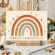 A simple and stylish boho rainbow design in warm festive tones brings charm to your holiday wishes. Perfect for minimalists who love earthy, cozy Christmas aesthetics.