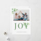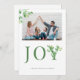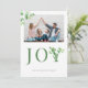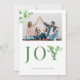 Cartão de Natal moderno e elegante com a palavra JOY em tipografia de letra manuscrita e folhagens botânicas. ++++++++++ Personalize com sua foto (orientação horizontal) e texto em ambos os lados!