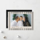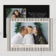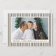 Compartilhe alegria de férias com este moderno Black Stripes Feliz Cartão com fotos de Natal. O design horizontal mostra sua foto favorita, bordada por um fundo creme com faixas pretas em negrito. "Feliz Natal" é apresentado no tipo clássico de serifa, com o nome da sua família apresentado em um script escrito à mão abaixo. No verso, adicione uma segunda foto junto com sua mensagem de feriado pessoal para uma maneira elegante e eterno de espalhar alegria de Natal.