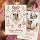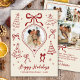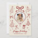 Cartão De Festividades Modern Hand-Drawn Red Bows Photo Christmas Happy