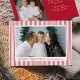 Celebrar as férias com este Cartão com fotos de Natal Feliz com as Modernas Stripes Vermelhas. O design horizontal mostra sua foto favorita emoldurada por riscas brancas e vermelhas em negrito, com "Feliz Natal" exibido em letras serif e seu nome de família em um roteiro escrito à mão. No verso, adicione uma segunda foto e sua mensagem de feriado personalizada para uma maneira alegre e moderna de compartilhar alegria de Natal.