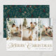 Cartão De Festividades Modern Script Photo Collage Green Merry Christmas