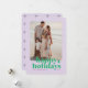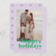 Um cartão de Natal moderno e brilhante com tipografia ousada em verde sobre um fundo roxo lavanda colorido com um padrão de estrela roxa no verso. A foto, nome e ano podem ser facilmente personalizados para um toque pessoal. Um design de Natal divertido, colorido e contemporâneo para se destacar nesta temporada de festas!