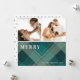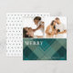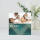 Cartão De Festividades Moderno Xadrez Verde Azul 2 Foto Feliz Natal