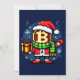 Um presente de Natal do futuro! O design "Festive Coin Man" apresenta uma figura de Natal em pixel art com uma moeda de ouro como cabeça, usando um chapéu e cachecol de Papai Noel enquanto segura um presente de Natal.