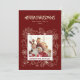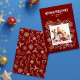 Esta moldura de foto simples, mas elegante, para família em vermelho escuro apresenta ilustrações de arte linear de uma flor de poinsettia, azevinho e frutos, flocos de neve, bengala de Natal, sinos, estrelas, biscoitos de gengibre e muito mais. Você pode modificar todo o texto e adicionar sua própria foto. Veja toda a coleção correspondente.