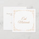 Cartão de felicitações de cor branca "Eid Mubarak" para dar aos seus entes queridos para a celebração desta ocasião festiva islâmica muçulmana. Há um texto em fonte de letra dourada escrito no centro do cartão. Há um elegante filigrama de arabesco dourado rodeando a delicada moldura da borda. Design clássico. Você pode personalizar este modelo editando as informações mencionadas no verso do cartão e os nomes do casal também. Antigo. Escolha o tipo de papel. Envelope em branco. Eid al-Adha. Eid ul-Fitr. Sua linha para design.