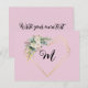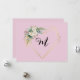 Rosas brancas e rosadas vintage e folhagens com coração geométrico dourado com monograma floral em fundo rosa com texto de caligrafia personalizável