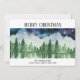 Envie votos de férias pacíficas com este encantador cartão de Natal em aquarela, apresentando uma cena alpina serena de árvores sempre verdes refletidas em um lago tranquilo sob um céu noturno estrelado. Picos de montanhas nevadas brilham com toques de pastel suave, criando uma sensação mágica e invernal. A frente diz “Feliz Natal” em negrito tipo serifado preto, com espaço abaixo para personalizar com o nome da sua família. Uma escolha única e artística para amantes da natureza e aqueles que apreciam a beleza tranquila durante as festas de fim de ano.