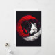 Um design hiperrealista que mostra um lobo yin-yang vermelho e branco com o equilíbrio dinâmico e o detalhe intenso do olhar poderoso do lobo.