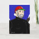 A man in a Santa-esque hat standing under falling snow with mountains in the background. The gay male market is the target for this card so hopefully you're shopping for the gay man in your life!