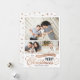 Barato Cartões de foto de Natal impressos personalizados com um modelo DIY simples para personalização. Esta design de diversão apresenta tipografia química em folhas de ouro rosa e preto. A mensagem dizia "Desejar-te um Natal Muito Feliz". O modelo tem espaço para 3 fotos da família. Use as ferramentas de design para editar as fontes e as cores. O lado inverso tem um padrão de ponto de abstrato de coordenação ou usa o espaço para adicionar mais fotos e texto.