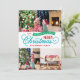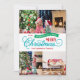 Barato Cartões de foto de Natal impressos personalizados com um modelo DIY simples para personalização. Este design de diversão apresenta tipografia quística em turquesa, verde e vermelho. A mensagem dizia "Desejar-te um Natal Muito Feliz". O modelo tem espaço para 3 fotos da família. Use as ferramentas de design para editar as fontes e as cores. O lado inverso tem um padrão de distribuição de coordenação ou usa o espaço para adicionar mais fotos e texto.