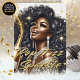 Cartão de Férias de Ano Novo Preto e Dourado de Mulher Negra Elegante