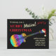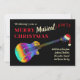 Traga alguns aplausos festivos de guitarra para a estação de natal com esta divertida carta de natal legal de natal. Uma mão engraçada desenhou uma guitarra semisacústica elétrica, psicodélica e colorida, vestindo um chapéu de Papai Noel com notas musicais e roteiro de tipografia, fácil de personalizar com a modelo. Ideal para famílias que amam a música para enviar cumprimentos de época e para guitarristas, professores de música e músicos. Arte original de Catherine Sweetman