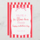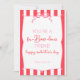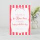 O design apresenta uma borda listrada rosa e branca com uma estrutura central escalada, realçada por um arco cor-de-rosa decorativo no topo. Sua alegre paleta de cor rosa e branca, combinada com uma mistura de estilos e tamanhos de fonte, cria uma composição divertida e elegante.