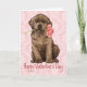 Puppy Love está no ar! Envie saudações ao Dia de os namorados com este cartão mostrando um cachorrinho fofo no Chocolate Lab segurando uma adorável rosa. Excelente de mandar para sua família ou seu Namorados que ama Labrador Retrievers.